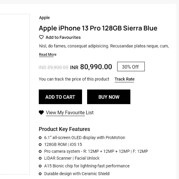 Highlight the USP of the product eg Mobile Phone >> Camera, Battery, Storage, OS etc